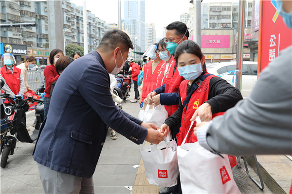 “你們辛苦了,大家快趁熱吃?!睈坌钠髽I(yè)總監(jiān)弓岳東和同事把熱騰騰的臘八粥送到疫情防控工作者手上叮囑道,“臘八節(jié)來臨,看到日夜堅守在第一防線的工作人員,時刻保護著大家生命健康安全,我們深受感動,所以想盡自己的綿薄之力,給他們送去飽含祝福的臘八粥,希望那些在深圳這寒冷冬天中堅守的工作者們感受到社會愛的溫度和力量?!?/p>