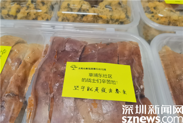 一腔熱忱,共克時(shí)艱。黨建引領(lǐng),筑起抗擊疫情的堅(jiān)固防線。在戰(zhàn)疫一線中,黨員先鋒勇戰(zhàn)疫,巾幗教師敢擔(dān)當(dāng)。教師志愿者積極發(fā)揚(yáng)“為人師表”的帶頭作用,用實(shí)際行動(dòng)彰顯教育人的精神,成為社區(qū)疫戰(zhàn)中的“硬核”擔(dān)當(dāng)。領(lǐng)隊(duì)老師劉小潔說,“大家激情滿懷,不喊累、不怕苦,能夠?yàn)榭箵粢咔槎κ且环莨鈽s與自豪!沒有一個(gè)冬天不可逾越,沒有一個(gè)春天不會(huì)來臨。”此外,老師們還為一線的抗疫戰(zhàn)士自制了暖心餐包,“草埔東社區(qū)的戰(zhàn)士們辛苦啦”“堅(jiān)守就是‘疫’去春來!”等暖心話語傳遞溫暖力量,匯聚勝利力量。