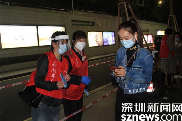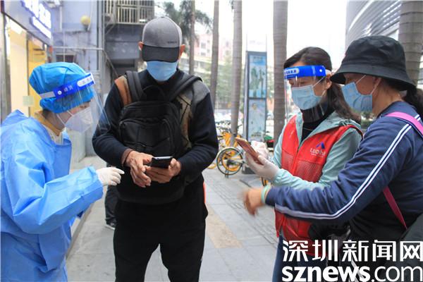 “楊妹,我來了,還帶來了一個人?!?3日晚,正在羅湖區(qū)桂園街道老圍社區(qū)禧程酒店核酸檢測點忙碌的社工楊女士,接到志愿者溫寶珍的電話。溫寶珍從“0107疫情”開始以來,每天都在核酸檢測點協(xié)助核酸檢測,這晚她把自己的兒媳婦吳永霞也帶來了?!捌牌艅倧钠渌鐓^(qū)的核酸檢測點做完義工回來,聽說老圍社區(qū)需要人,放下飯碗就來了。婆婆這么大年紀了還沖在前面,我做兒媳婦的,怎么也要向婆婆學(xué)習啊?!眳怯老紝ι绻ふf?!皯?yīng)該的應(yīng)該的,疫情當前,每個人都有義務(wù)出來與病毒作戰(zhàn),光是靠社區(qū)工作者不行,他們太累了。”溫寶珍邊說邊幫兒媳穿好義工服,把粵核酸的二維碼交給兒媳,并教兒媳如何在手機上查驗。