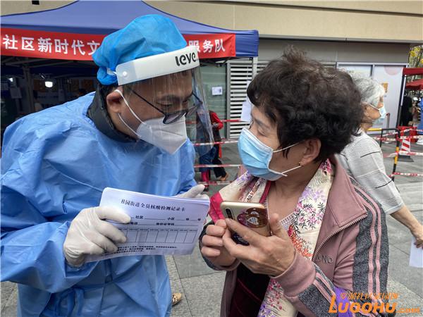 “老人家,請到那邊去,那邊有專屬的綠色通道?!痹趪僦行膹V場核酸檢測點另一側(cè),只見一名脖子滴落著汗珠的志愿者忙上忙下,喉嚨已沙啞,仍然耐心回答著居民每一個問題?!半m然很辛苦,我的嗓子也有點說不出話了,但是我們還是會繼續(xù)堅守的,請大家放心?!彼f道。