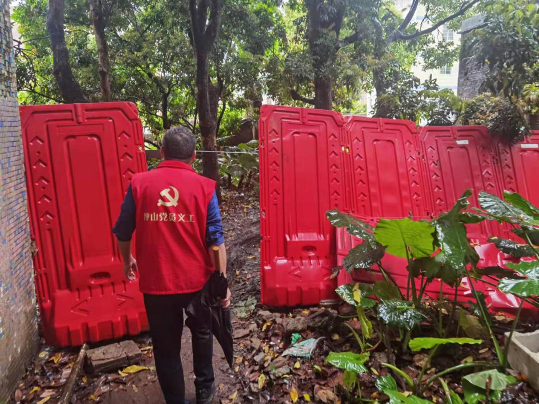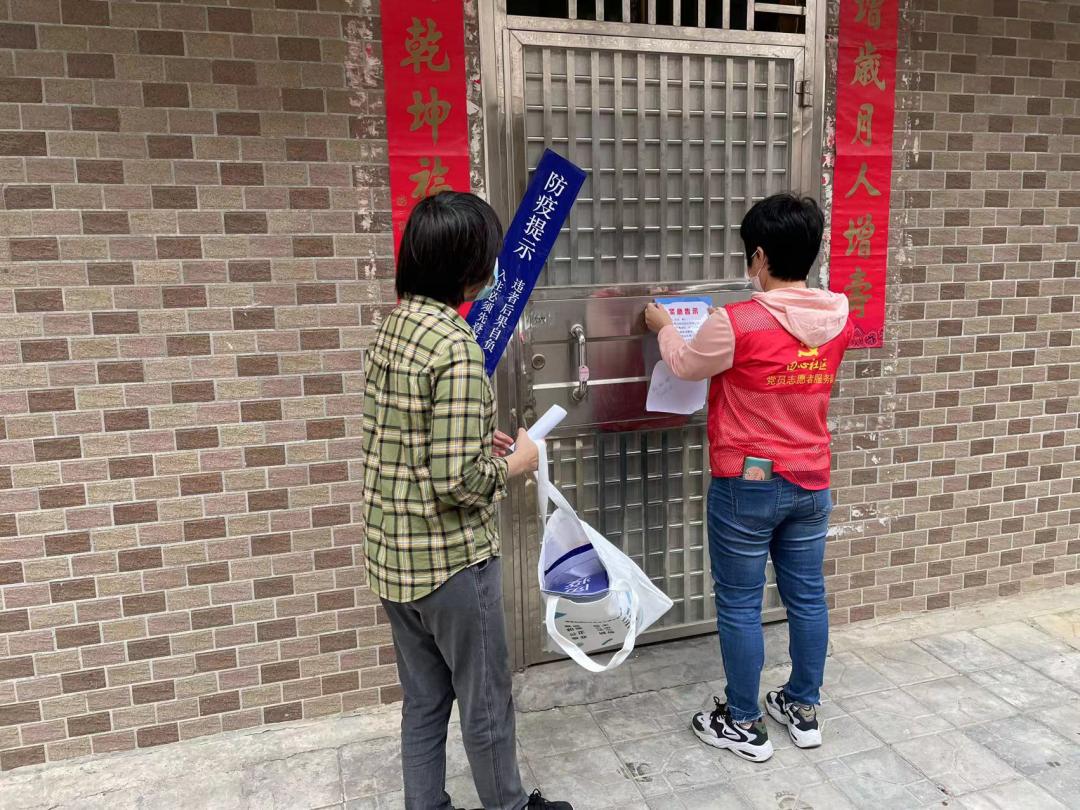△ 關(guān)工委委員趙為兵、賴(lài)碧梅帶頭參與疫情防控工作,動(dòng)員轄區(qū)物業(yè)、熱心居民共同參與抗疫志愿服務(wù)