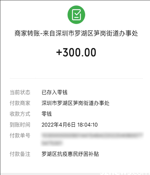 甘心是一名上班族,一家三口在筍崗村居住了5年多。今天下午,他在社區(qū)微信群看到了申領(lǐng)補(bǔ)貼小程序的鏈接,就點(diǎn)了進(jìn)去。只要填姓名,選擇住在哪里,掃描人臉識(shí)別,就完成了申請(qǐng),過程不到1分鐘?!拔?點(diǎn)多申請(qǐng)的,6點(diǎn)多就拿到了補(bǔ)貼。這太快了!我還以為要審核好幾天呢!”6點(diǎn)多,他收到了一筆來自筍崗街道辦事處的轉(zhuǎn)賬。300元零錢直接存入了他的微信錢包?!疤@喜了,我還沒有想好怎么花?!备市谋硎?,以微信形式發(fā)放補(bǔ)助對(duì)居民消費(fèi)非常便利,計(jì)劃把這筆錢用于家庭花銷。