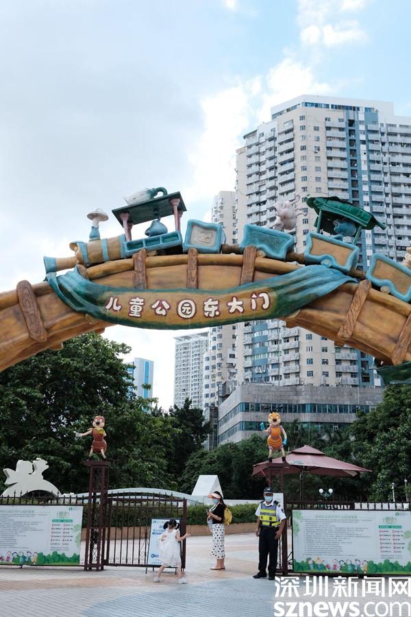 布滿童趣裝飾的東大門,進入公園前需出示健康碼和核酸檢測證明,做好疫情防控措施,為前來玩耍的孩子們一份安全保障。