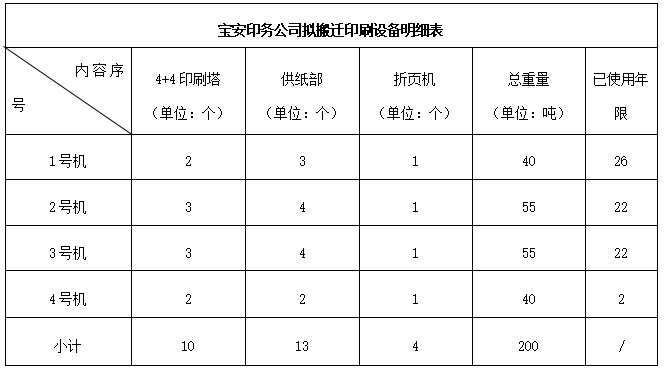 本項目為深圳報業(yè)集團寶安印務整體搬遷印刷設備吊裝項目,搬遷設備為4臺高斯SSC印刷設備,施工區(qū)域包括:設備起拆點深圳市寶安區(qū)流塘路寶安日報報社院內(nèi)、安裝點深圳市龍華區(qū)清麗路深圳報業(yè)集團傳媒產(chǎn)業(yè)園備用線。印刷設備具體情況如下:
