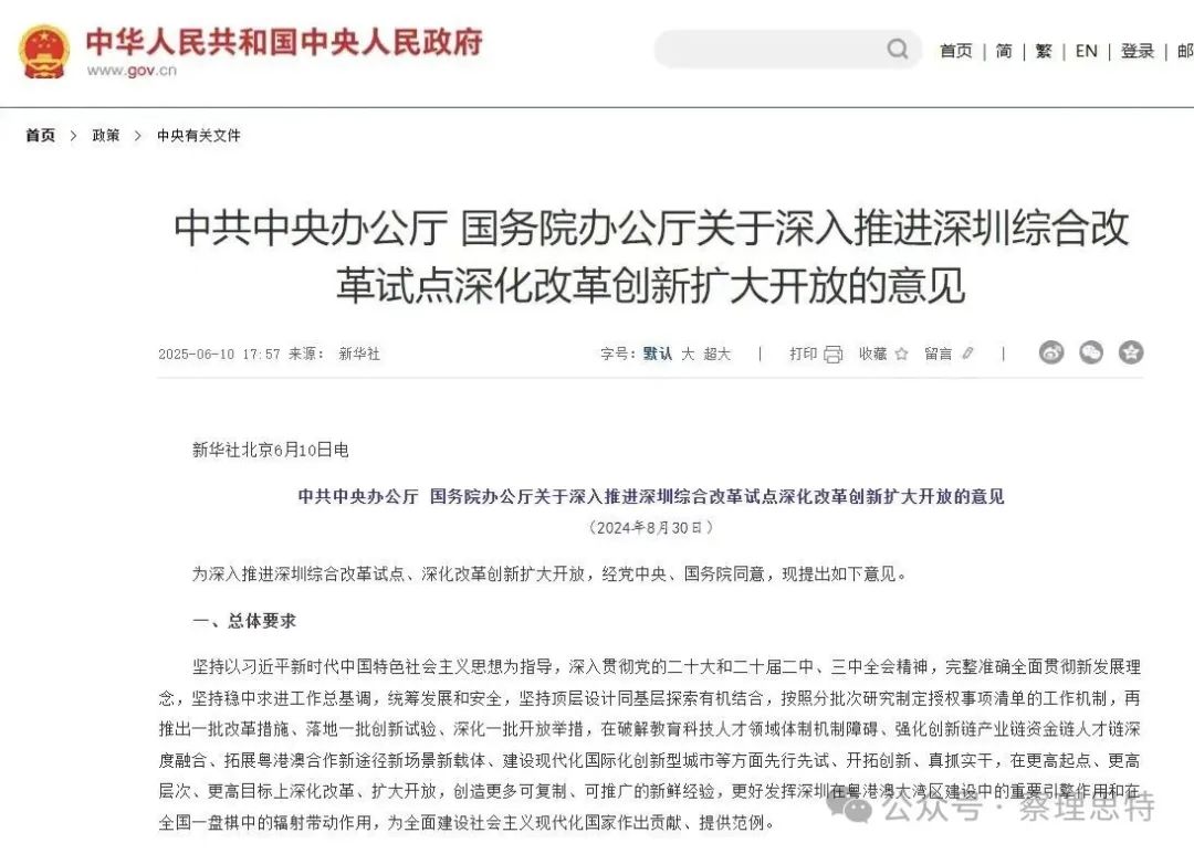 深圳的改革,是一部永不停歇的“進行曲”。從經(jīng)濟特區(qū)到先行示范區(qū),再到綜合改革試點深化,深圳始終以“敢闖敢試、敢為人先”的精神,探索中國式現(xiàn)代化的新路徑。此次《意見》的印發(fā),不僅為深圳注入了新動能,更為全國改革提供了新范式。
