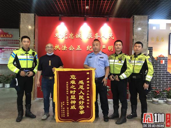 10月14日,群眾將一面題有“危難之時顯神威,感恩人民好警察”的錦旗送到羅湖交警大隊,感謝羅湖機訓中隊民警及鐵騎隊員在劉先生遇到困難時伸出援助之手。