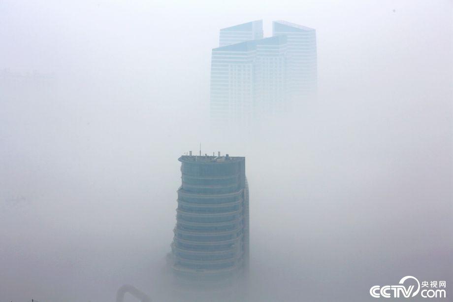山東日照出現(xiàn)平流霧景觀 建筑物若隱若現(xiàn)