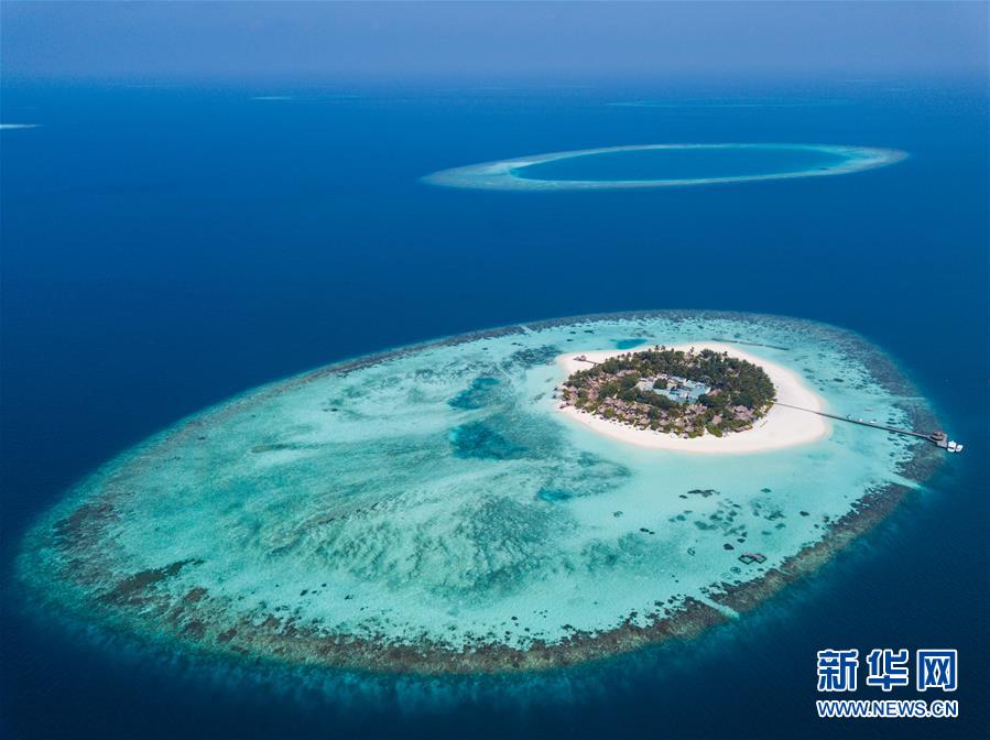 這是2017年12月6日拍攝的馬爾代夫瓦賓法魯島和附近的珊瑚礁。