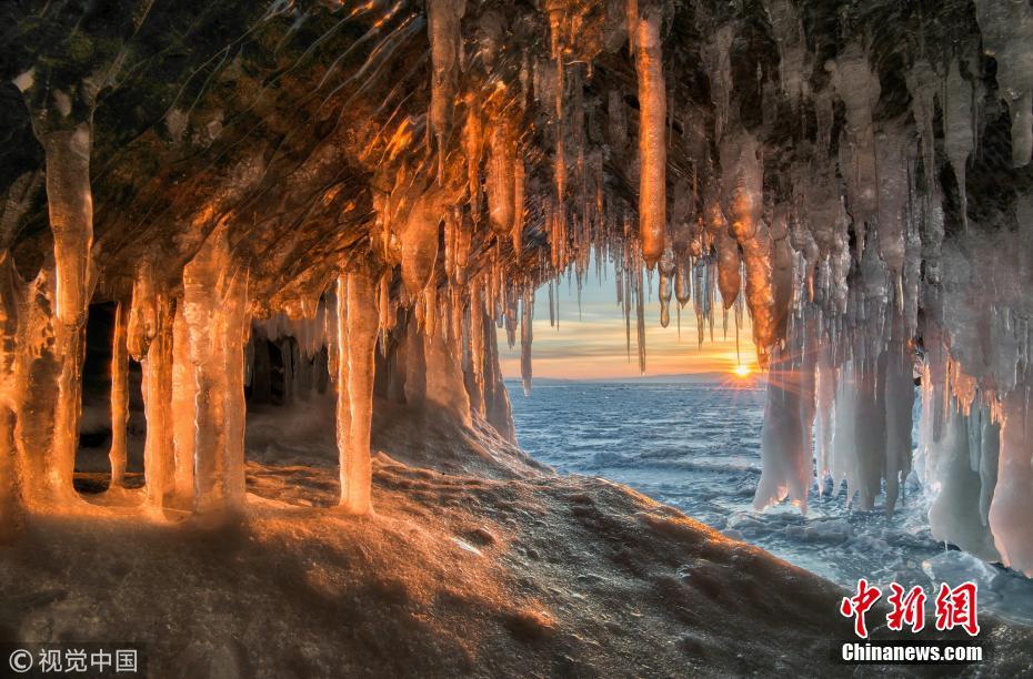 俄羅斯西伯利亞貝加爾湖,冰洞里成千上萬的冰錐營(yíng)造了一種超現(xiàn)實(shí)的美景。39歲的攝影師安德烈(Andrey Grachev)在世界上最深的湖泊旁發(fā)現(xiàn)了這些洞穴。這些冰錐就像倒置的哥特式建筑的尖頂,有的甚至有10英尺(約3米)長(zhǎng)。安德烈來自莫斯科,他說這一景觀是暴風(fēng)雨造成的,大量的水滲入洞內(nèi)后在低溫中被立刻凍住。圖片來源:視覺中國(guó)