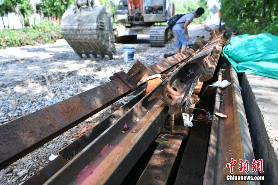 5月8日,穿過昆明市區(qū)的百年滇越鐵路一段已經(jīng)被拆除。當日,昆明地鐵4、5號線正在進行建設,由于施工影響,穿城而過的一段百年滇越鐵路被拆除,“老鐵路”為“新地鐵”建設讓步。據(jù)了解,在地鐵建設完工后,這段滇越鐵路將被重新鋪設,恢復運營。中新社記者 任東 攝