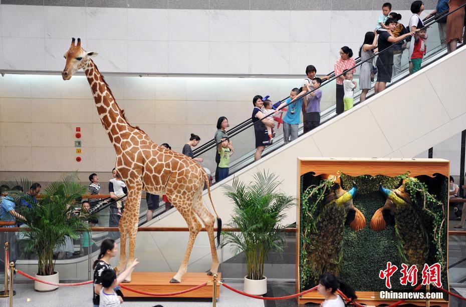 5月27日,各類飛禽走獸活靈活現(xiàn)地出現(xiàn)在民眾的眼前。正在福建博物院展出的第四屆中國動物標(biāo)本大賽的257件惟妙惟肖的標(biāo)本作品集中對外開放,讓民眾如進(jìn)入“動物世界”。本次大賽匯集了全國標(biāo)本制作企業(yè)、博物館、大專院校、研究所等60多家單位參加,標(biāo)本涵蓋哺乳類、鳥類、爬行類、兩棲類、魚類等動物類群的皮張和骨骼標(biāo)本。主辦方希望通過標(biāo)本大賽,向公眾展現(xiàn)動物世界的美麗,宣傳生物多樣性和生態(tài)文明,借鑒吸收國際標(biāo)本制作先進(jìn)經(jīng)驗,提高中國野生動植物標(biāo)本制作的整體水平。圖為大賽參賽作品展吸引了許多民眾前來觀賞。中新社記者 張斌 攝