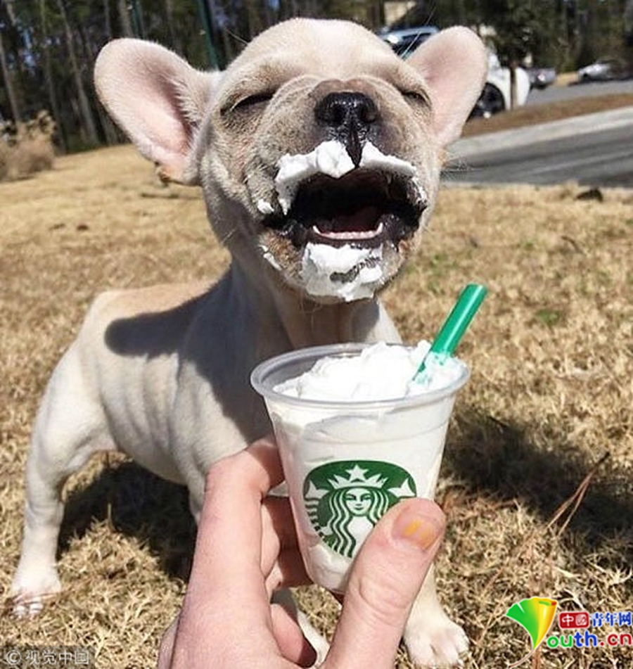 2016年9月22日訊(具體拍攝時間不詳),“狗生”百態(tài),一只吃到冰淇淋很開心的小狗。