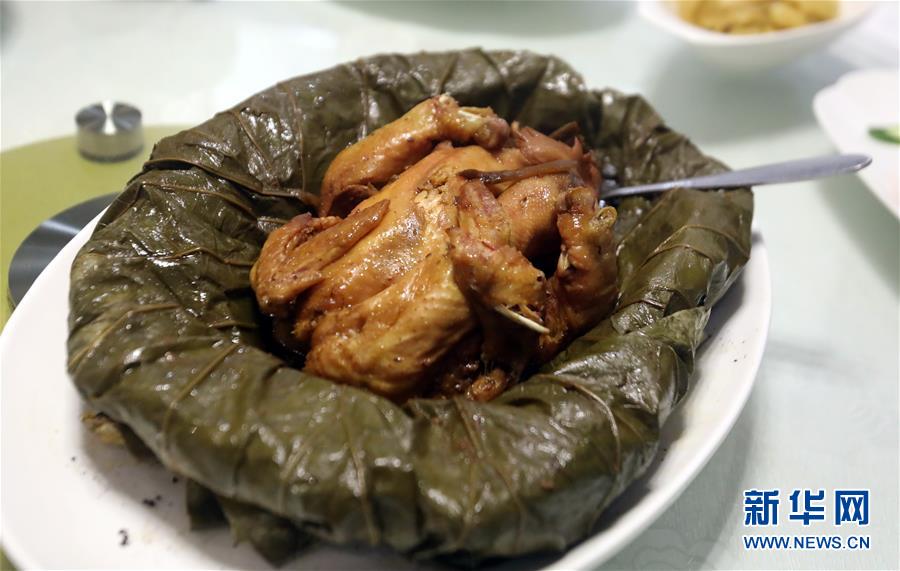 這是在香港灣仔杭州酒家拍攝的“叫化雞”(6月16日攝)。 金庸在武俠小說《神雕俠侶》中借郭靖之口說過: “為國為民,俠之大者?!蔽鋫b精神在香港備受推崇,有其心向中華文化的情感基礎。在這個國際美食之都,品味舌尖上的武俠味,內中的感覺別有深意。新華社記者 李鵬 攝