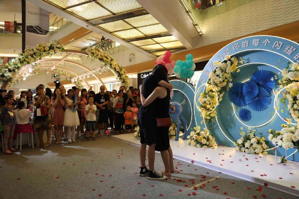 開(kāi)幕式當(dāng)天,潤(rùn)金店工作人員還配合市民楊先生上演了一場(chǎng)浪漫的“求婚大作戰(zhàn)”。原來(lái),數(shù)日前,楊先生到潤(rùn)金店表示要買(mǎi)一枚與眾不同的戒指向女友求婚。在銷售顧問(wèn)的建議下,楊先生選購(gòu)了一枚藍(lán)寶石戒指作為求婚信物。得知楊先生的心意后,潤(rùn)金店品牌策劃部決定與楊先一起在七夕當(dāng)天完成這場(chǎng)浪漫的“求婚大作戰(zhàn)”。當(dāng)天,楊先生帶著毫不知情的女友來(lái)到潤(rùn)金店“炫出色彩 耀你不凡”VIP品鑒會(huì)現(xiàn)場(chǎng)。正當(dāng)女友全神貫注欣賞小提琴、拉丁舞等開(kāi)幕式表演節(jié)目時(shí),楊先生從兜里掏出事先準(zhǔn)備好的藍(lán)寶石戒指,單膝跪地向一臉茫然的女友喊:“嫁給我吧?!贝藭r(shí),開(kāi)幕式現(xiàn)場(chǎng)背景音樂(lè)“配合”地?fù)Q成了甜蜜的《今天你要嫁給我》。感動(dòng)得熱淚盈眶的女友在圍觀市民的歡呼中,拉起了楊先生,并答應(yīng)了他的求婚。圍觀市民表示“七夕不過(guò)是路過(guò),卻不料狠狠地吃了一把狗糧?!?/p>