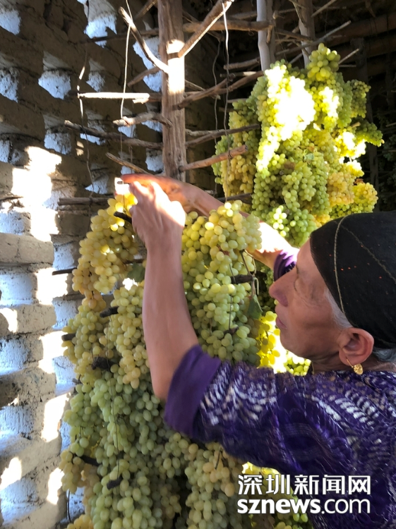 維族老鄉(xiāng)告訴我們,葡萄干的制作有三種方法:太陽曬干、樹上風干、土房晾干。趙春麗攝
