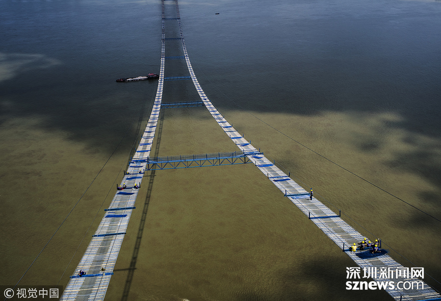 ???? 貓道是懸索橋施工時(shí)架設(shè)在主纜之下、平行于主纜的線形臨時(shí)施工便道,是主纜系統(tǒng)乃至懸索橋整個(gè)上部結(jié)構(gòu)的施工高空腳手架平臺(tái),作為極其重要的臨時(shí)施工設(shè)施,大橋竣工后被拆除。