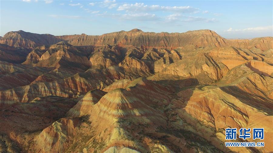 這是7月15日拍攝的蘭州樹屏丹霞地貌。蘭州樹屏丹霞國(guó)家地質(zhì)公園位于甘肅省蘭州市永登縣咸水河流域及其毗鄰地區(qū),分布在蘭州市所屬的永登縣、皋蘭縣、西固區(qū)、安寧區(qū),主體位于永登縣樹屏鎮(zhèn)、苦水鎮(zhèn)和西固區(qū)河口鎮(zhèn)。其主體地質(zhì)遺跡為丹霞和彩色丘陵,登高遠(yuǎn)眺,綿延起伏,絢爛瑰麗,如同大自然創(chuàng)作的壯美油畫。新華社記者陳曄華 攝