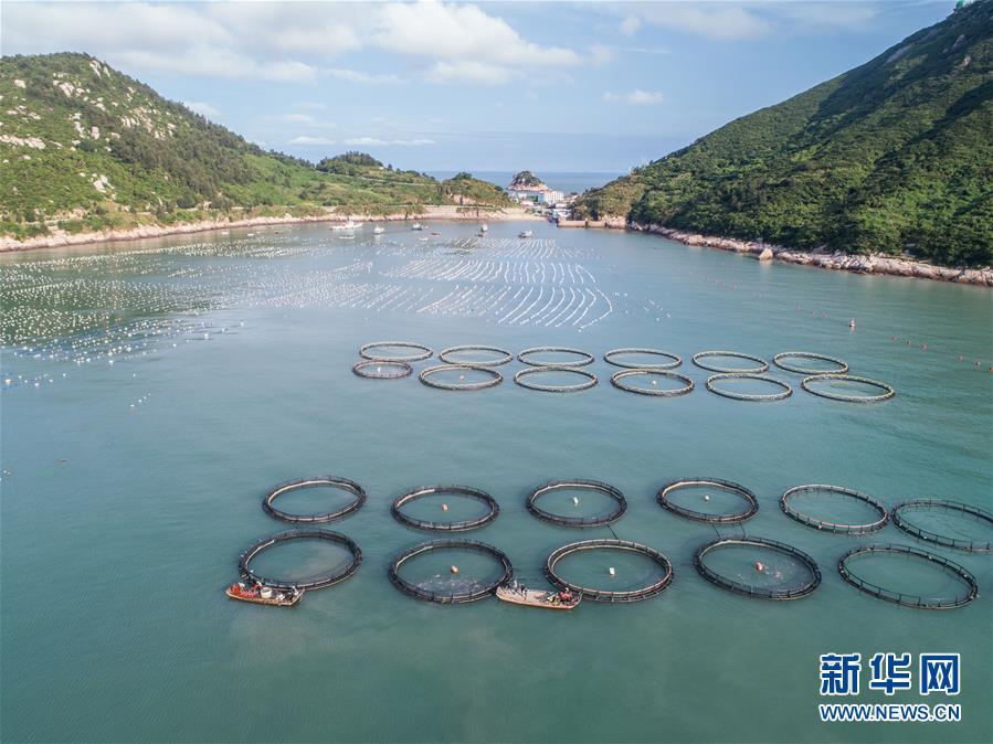 8月18日,漁船在南麂島馬祖岙海域的“海上牧場”大黃魚養(yǎng)殖區(qū)內(nèi)喂食(無人機(jī)拍攝)。南麂島位于浙江東南海域,水質(zhì)好,水溫、鹽度都適合大黃魚等養(yǎng)殖魚類的生長繁殖,因此當(dāng)?shù)氐乃a(chǎn)品也一直保持了較高的品質(zhì)和口碑。進(jìn)入8月,浙江省溫州市平陽縣南麂鎮(zhèn)海域上大片的大黃魚、貽貝等特色海產(chǎn)品養(yǎng)殖區(qū)域迎來豐收季節(jié),養(yǎng)殖戶們駕駛漁船在養(yǎng)殖區(qū)海域進(jìn)行打撈收獲,在碧海藍(lán)天下構(gòu)成了一幅“海上牧場”的美麗豐收景象。近年來,南麂鎮(zhèn)政府引導(dǎo)漁民養(yǎng)殖戶充分發(fā)揮“靠海吃?!钡馁Y源優(yōu)勢,大力發(fā)展海洋養(yǎng)殖經(jīng)濟(jì)和海島旅游經(jīng)濟(jì),實(shí)現(xiàn)了南麂由“生態(tài)美”向“產(chǎn)業(yè)美”,“產(chǎn)業(yè)美”向“經(jīng)濟(jì)美”的轉(zhuǎn)變。同時(shí)該鎮(zhèn)堅(jiān)持以大黃魚、貽貝等為特色產(chǎn)業(yè)支撐,精準(zhǔn)發(fā)展高效海洋養(yǎng)殖業(yè),重點(diǎn)培養(yǎng)一批新型職業(yè)漁民,依靠專業(yè)技術(shù)支持,實(shí)現(xiàn)深海仿生養(yǎng)殖,讓好生態(tài)造就好品質(zhì),重點(diǎn)打造南麂養(yǎng)殖品牌,組建營銷網(wǎng)絡(luò),拓展特色海產(chǎn)品市場。新華社記者 徐昱攝