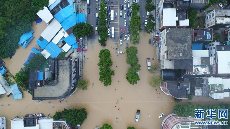 9月18日,陽春市漠陽江畔的街道被洪水淹沒。 新華社記者 周科 攝