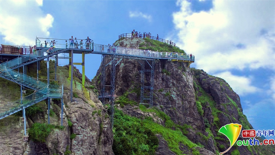 金子山素以天梯而著名,原來的通天天梯是用石頭建成的。而最高峰的天梯則用玻璃建成的,是國內(nèi)首個(gè)玻璃天梯,也是全國首個(gè)樓梯型的玻璃旅游產(chǎn)品。