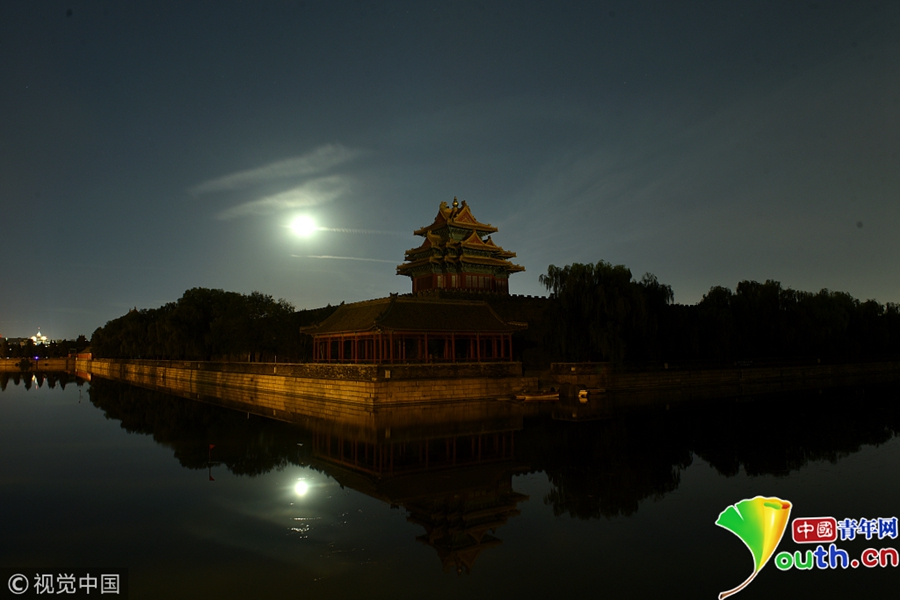 中國青年網(wǎng)北京9月25電 2018年9月24日,中秋節(jié),北京故宮西北角樓,許多市民和攝影愛好者聚集故宮角樓下拍攝月亮。圖片作者/視覺中國