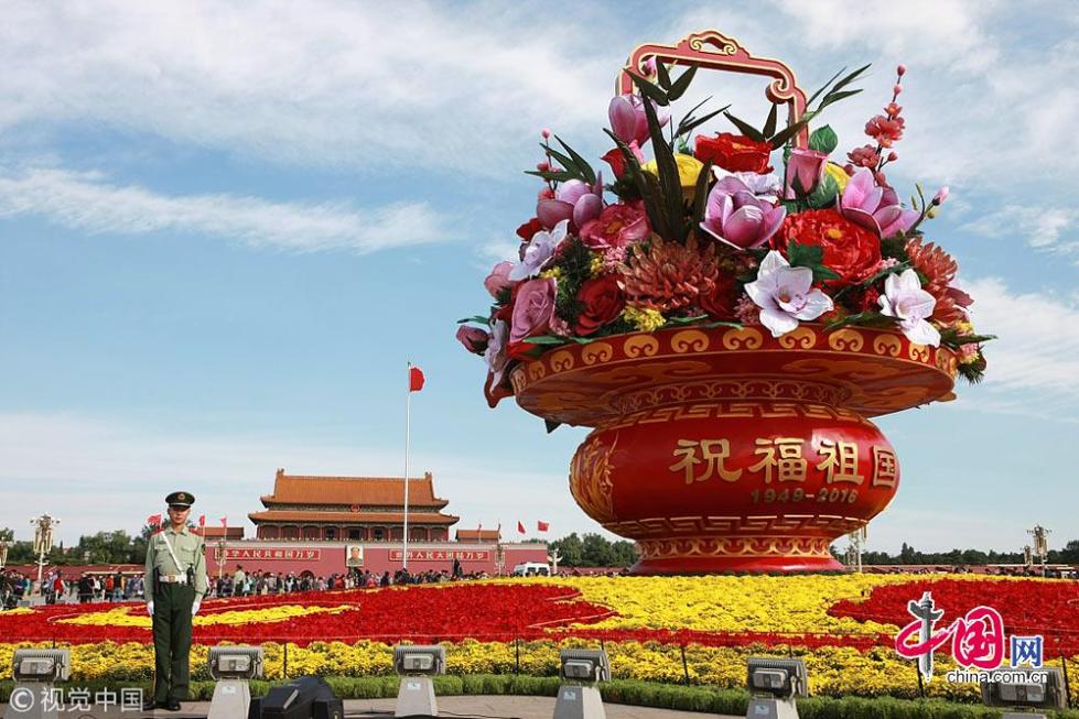 “祝福祖國”花籃連續(xù)八年綻放天安門廣場 獻(xiàn)禮國慶