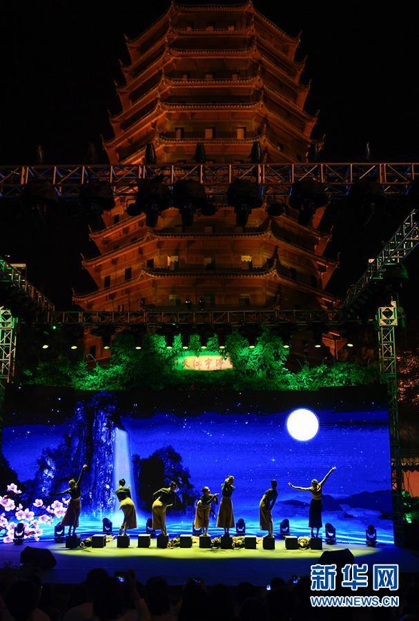 9月26日,浙江音樂學院舞蹈團成員在錢塘江畔六和塔下表演舞蹈。新華社記者 黃宗治 攝