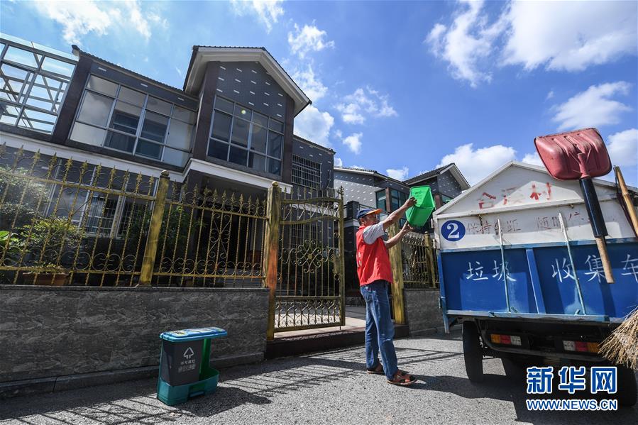9月27日,小浦鎮(zhèn)合溪村垃圾分類清運員符正芳在清運村民門口的分類垃圾桶,同時他還要用手機(jī)上的垃圾分類APP進(jìn)行掃碼簽到,確保每天每戶清掃到位。從9月初開始,浙江省長興縣小浦鎮(zhèn)推廣使用手機(jī)垃圾分類智能管理平臺。通過這款A(yù)PP可以進(jìn)行村民垃圾分類情況打分、清運員每日簽到、監(jiān)督員巡查等,并能即時生成農(nóng)戶垃圾分類“成績單”,所有農(nóng)戶均可通過APP查詢垃圾分類排行榜,既方便又環(huán)保。新華社記者 徐昱 攝