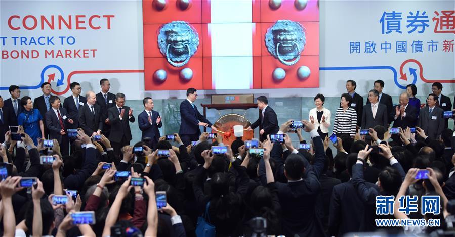 香港交易所舉行“債券通”開(kāi)通儀式(2017年7月3日攝)。 新華社發(fā)(王申攝)