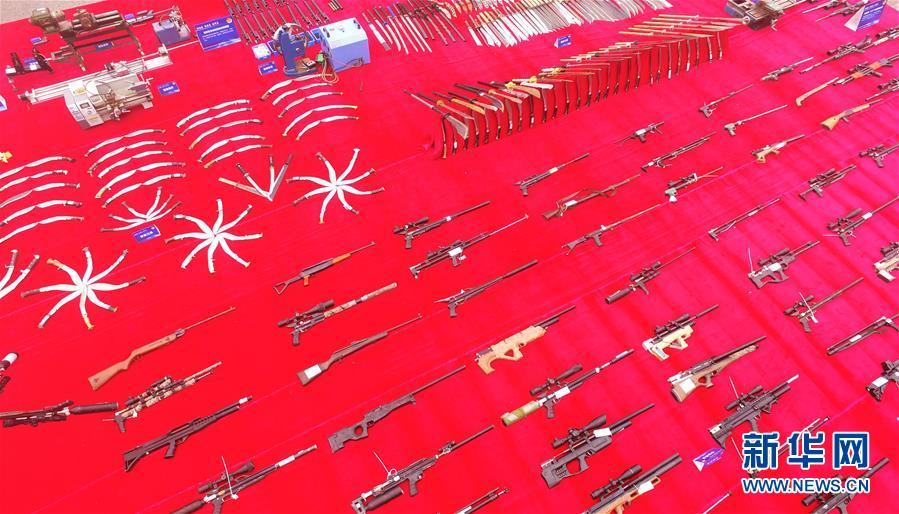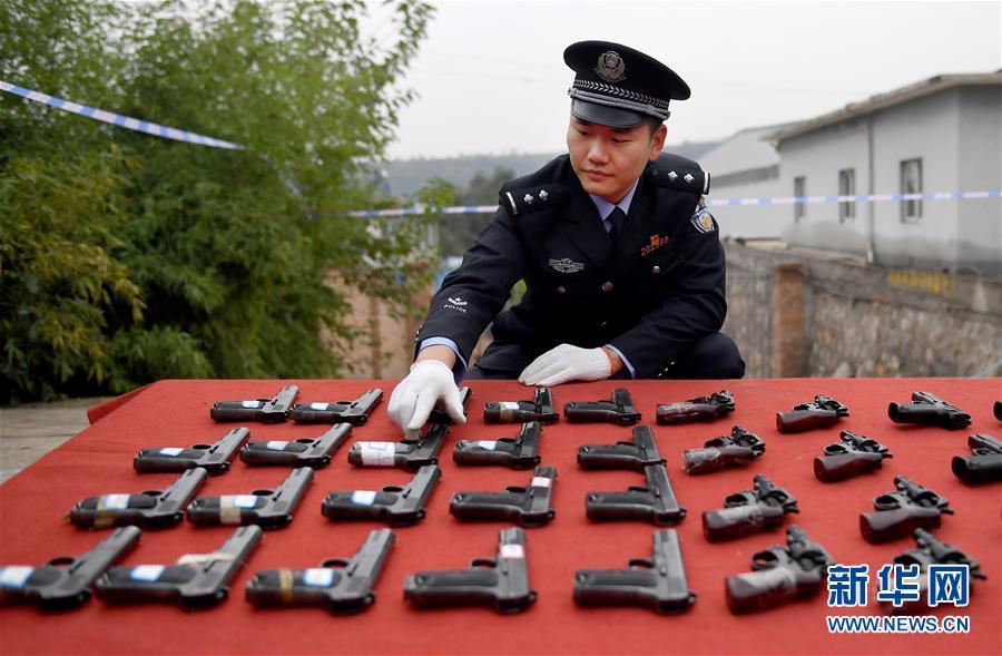 9月20日,在河北省邯鄲市天鴻廣場(chǎng),警方展示即將銷毀的非法槍支。 新華社記者 王曉 攝