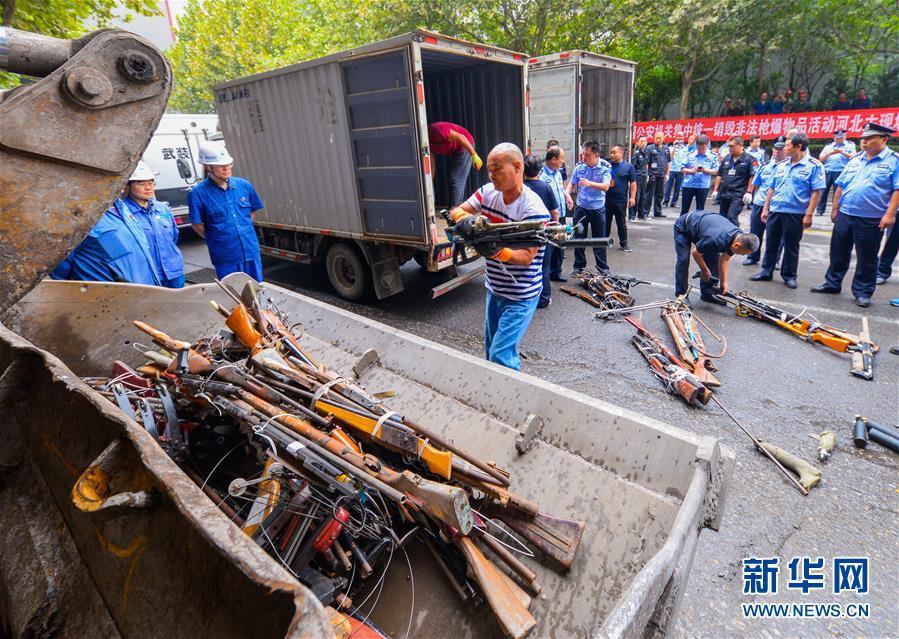 9月20日,在河北省邯鄲市邯鄲鋼鐵集團第三煉鋼廠,非法槍支被集中銷毀。 新華社記者 王曉 攝