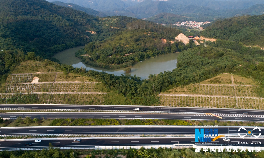 這是改擴(kuò)建工程施工后的廈蓉高速南靖縣和溪路段(無人機(jī)拍攝)。新華網(wǎng) 肖和勇 攝