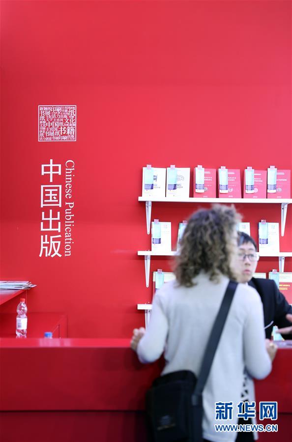 10月10日,在德國(guó)法蘭克福,一名讀者在第70屆法蘭克福書展中國(guó)展區(qū)參觀。
