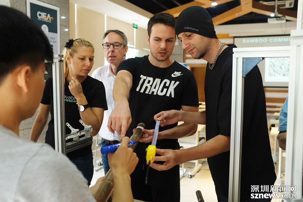 本次工作坊屬于綠色智造創(chuàng)客工坊的一部分,吸引了來自不同國家的大約20名學(xué)員參與,學(xué)員先通過挑選三根大的竹子和四根小的竹子來做單車的前三角和后三角,之后用機(jī)器打磨讓竹子變成合適的大小,之后進(jìn)行組裝,最后變成一輛竹子單車。