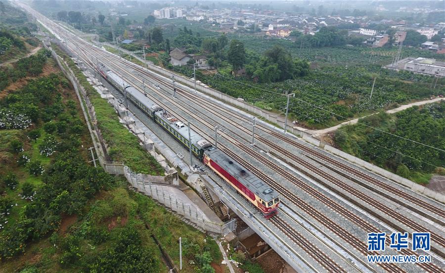 當(dāng)日起,成雅鐵路成朝段啟動聯(lián)調(diào)聯(lián)試工作。成雅鐵路成朝段于2013年8月開工建設(shè),為雙線客運(yùn)專線,設(shè)計時速200公里。 新華社記者薛玉斌攝