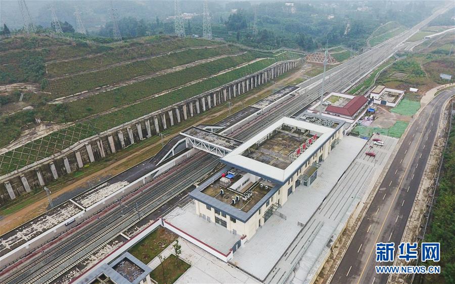 成雅鐵路成朝段朝陽(yáng)湖站(10月14日無(wú)人機(jī)拍攝)。新華社記者薛玉斌攝