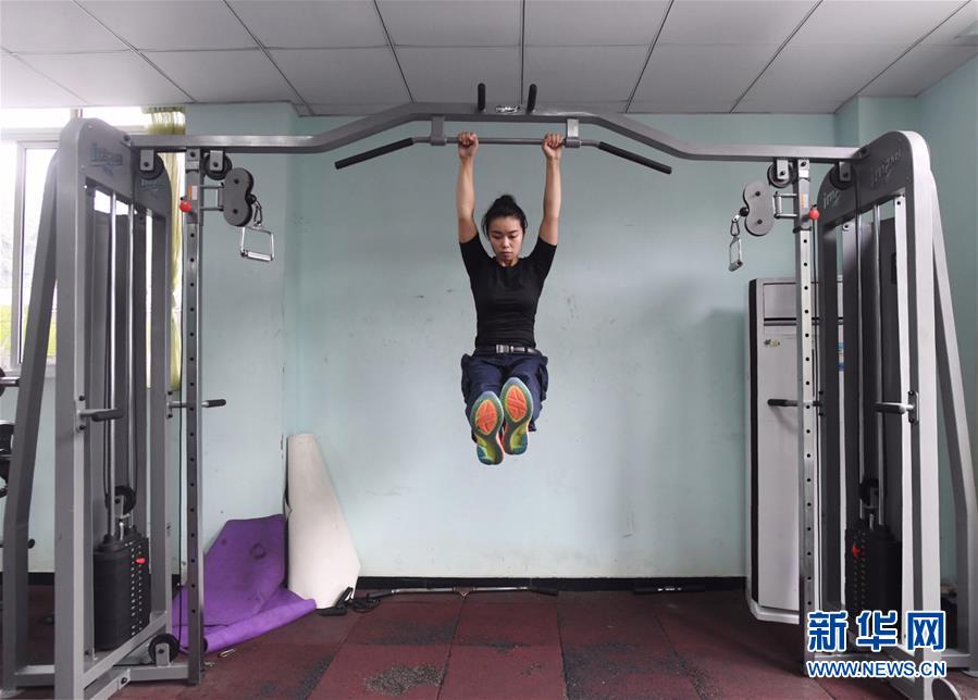 10月16日,湯春燕在健身房內(nèi)進行體能訓練。 新華社記者王全超攝
