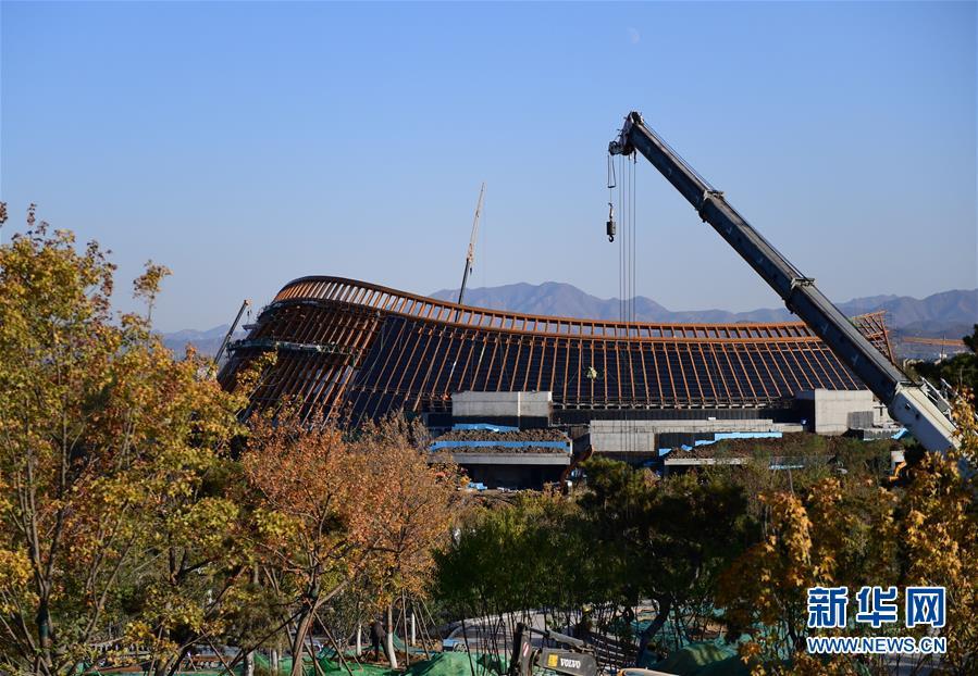 10月18日拍攝的建設(shè)中的北京世園會(huì)中國館。新華社記者 張晨霖 攝