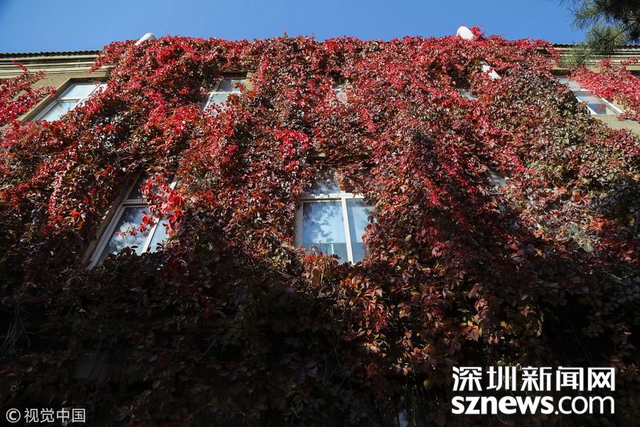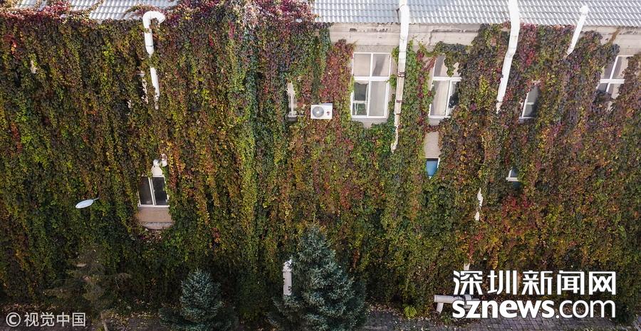 深圳新聞網(wǎng)訊 2017年10月21日,沈陽(yáng),懷遠(yuǎn)樓北側(cè)的墻面也是被爬墻虎所覆蓋,由于陽(yáng)光很少能照射到植被,所以爬墻虎大都還是綠色。