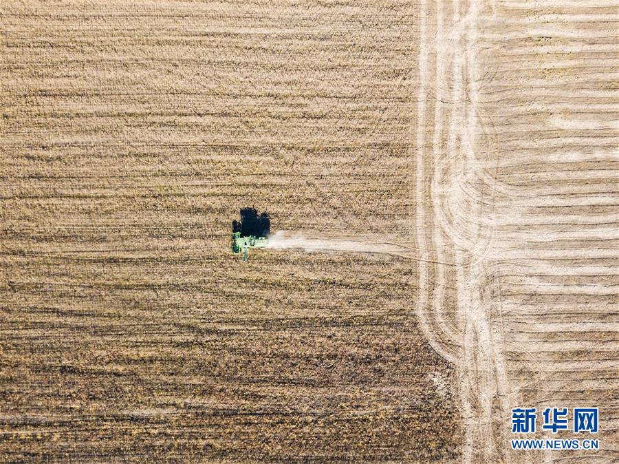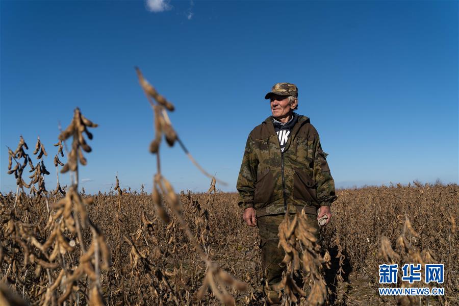 村民在俄羅斯猶太自治州比羅比詹市附近的大豆農(nóng)場里勞作(10月19日攝)。新華社記者張若玄攝