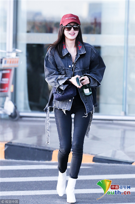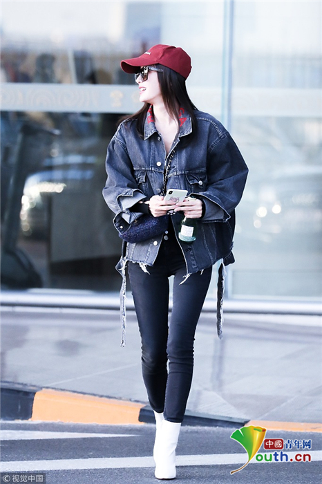 2018年10月24日,北京,“富察皇后”秦嵐現(xiàn)身機(jī)場(chǎng)。她頭戴小紅帽,身穿黑色緊身褲顯美腿筆直修長(zhǎng),上身穿著牛仔外套青春逼人,邊走邊甜笑玩“撩發(fā)殺”,靚麗吸睛。