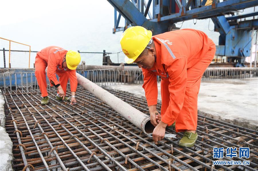 10月23日,在重慶涪陵,施工人員在渝懷鐵路涪秀二線重點工程——烏江右線大橋主跨合龍現(xiàn)場作業(yè)。 當日,由中鐵四局承建的渝懷鐵路涪秀二線重點工程——烏江右線大橋主跨成功合龍,標志著大橋主體工程全部順利結(jié)束。烏江右線大橋項目全程460.1米,主跨192米,跨越烏江和319國道。在兩年多的建設(shè)過程中,施工人員攻克了“不等高墩”“不對稱邊跨”“邊跨入隧”等多個技術(shù)難題。 新華社記者王全超攝