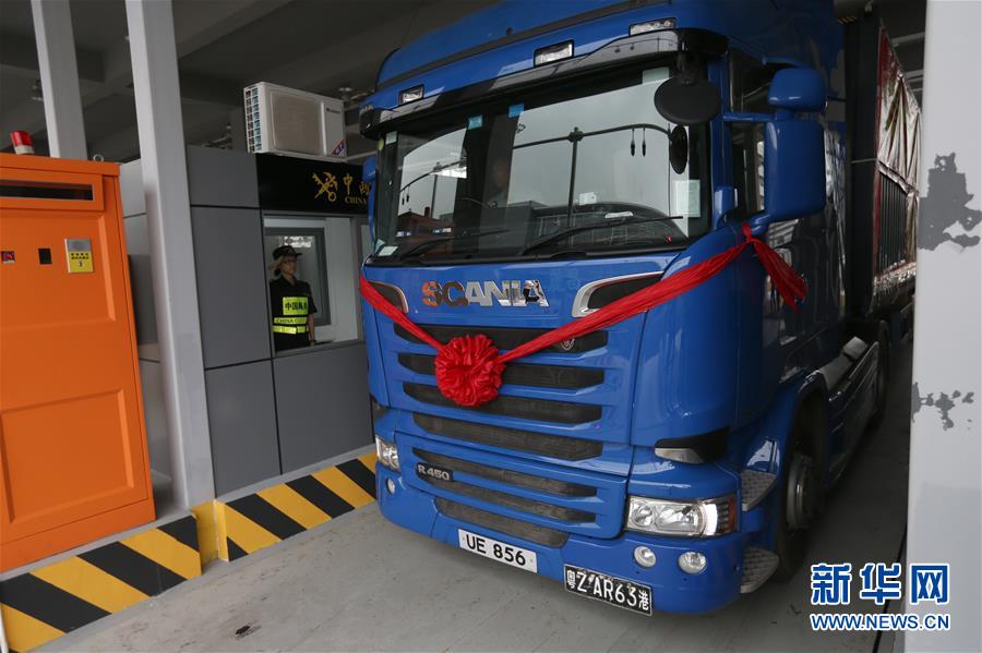10月24日,港珠澳大橋珠海公路口岸通車首票出口貨物抵達(dá)一站式貨車出境驗(yàn)放通道。當(dāng)日9時(shí),港珠澳大橋正式通車。 新華社記者張加揚(yáng)攝