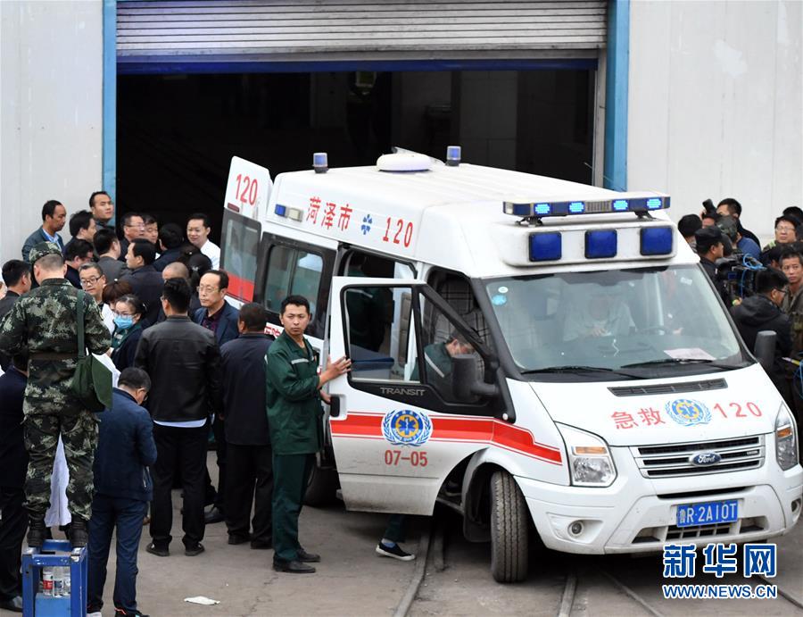 在山東龍鄆煤業(yè)沖擊地壓救援現(xiàn)場,一名礦工成功獲救(10月21日攝)。