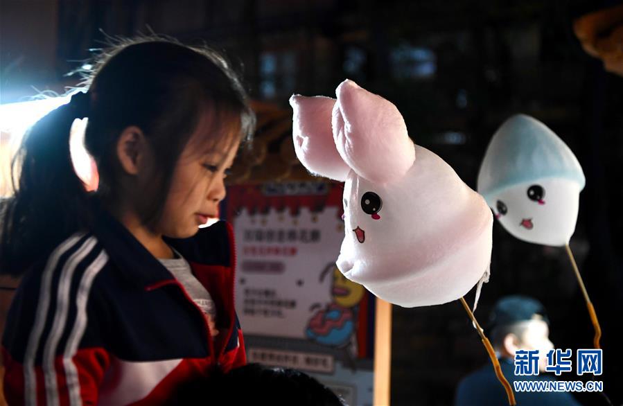 10月29日,在首屆天下碼商大會(huì)碼商集市上,一名小女孩在觀看創(chuàng)意棉花糖制作。 10月28日至30日,由福州市政府聯(lián)合支付寶主辦的首屆天下碼商大會(huì)在福建福州舉行。 新華社記者 姜克紅 攝