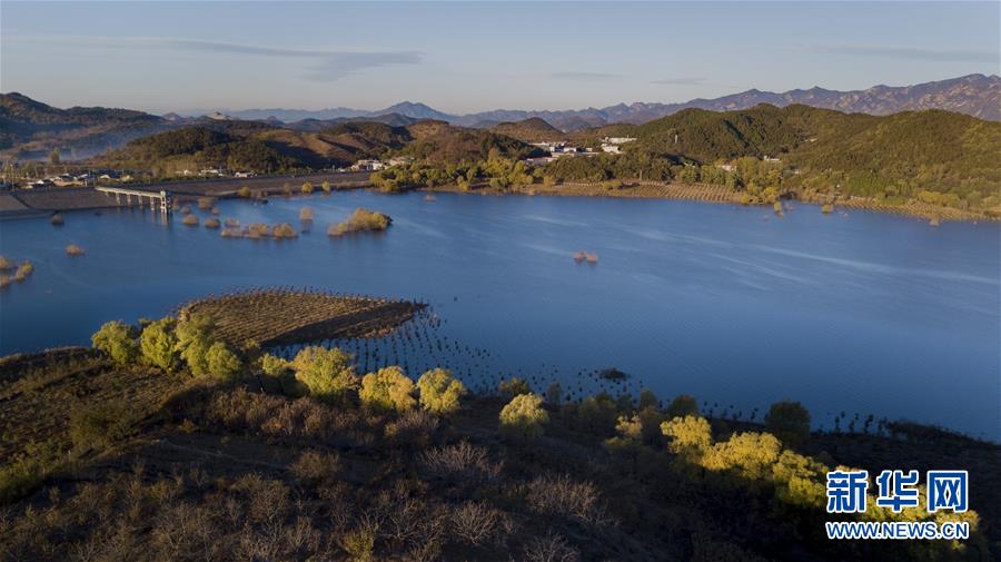 金秋時節(jié),北京密云水庫沿岸樹林逐漸變黃,山水相映,恬淡寧靜。 新華社記者陶明攝