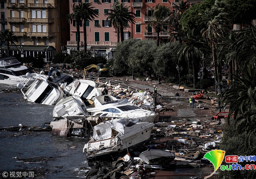 意大利極惡劣天氣致10人死 港口一片狼藉
