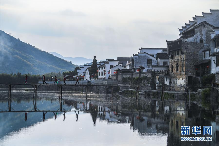 2018年10月17日,游客從河橋鎮(zhèn)一木橋上走過(guò)。浙江省杭州市臨安區(qū)河橋鎮(zhèn)擁有1300多年的歷史,鎮(zhèn)范圍內(nèi)至今仍保留著100多幢古建筑。2018年2月,河橋鎮(zhèn)成功創(chuàng)建浙江省小城鎮(zhèn)環(huán)境綜合整治樣板鎮(zhèn)。
