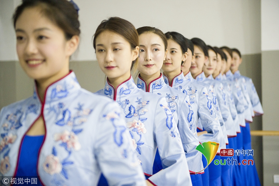 來(lái)自浙江傳媒學(xué)院的禮儀志愿者們正在進(jìn)行緊張有序的集中訓(xùn)練。圖片作者:浙江日?qǐng)?bào) 馮賀/視覺(jué)中國(guó)