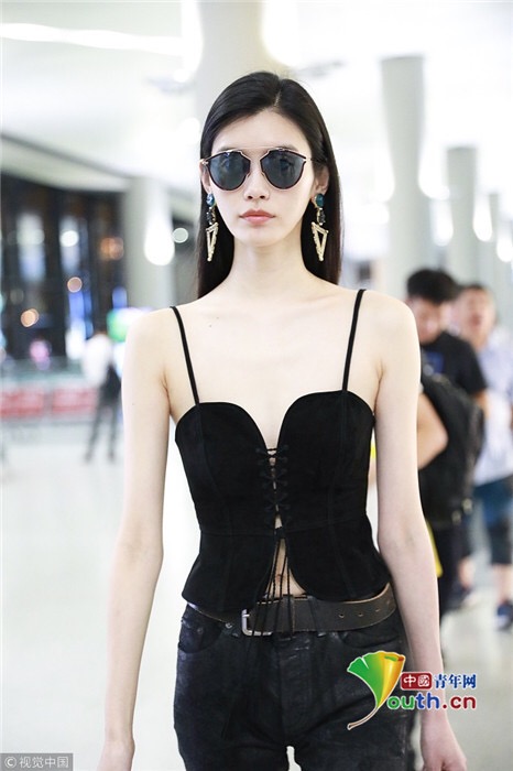 2018年7月25日,上海,奚夢瑤現(xiàn)身機場,她穿吊帶馬甲配過膝長靴,頻撩發(fā)似女特工。